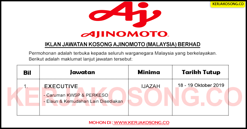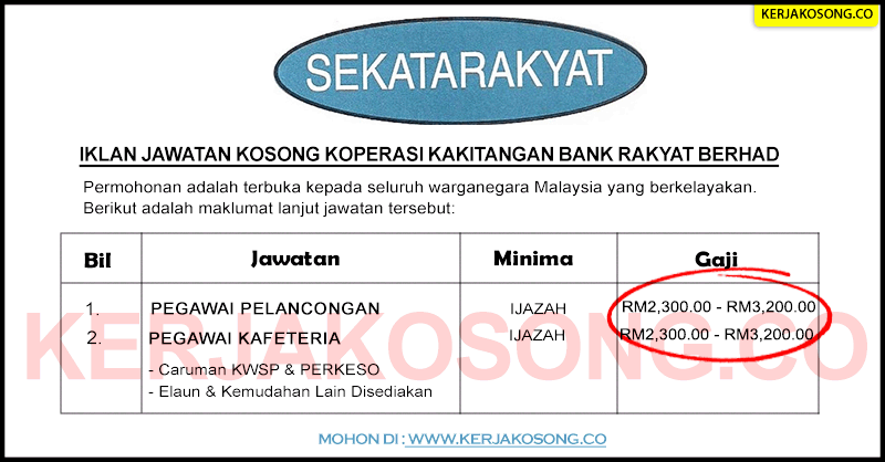 Jawatan Kosong Kumpulan Wang Persaraan (KWAP). Portal jawatan kosong kerajaan ingin berkongsi maklumat jawatan kosong yang kini dibuka di Kumpulan Wang Persaraan (KWAP) dan kepada warganegara Malaysia yang berminat dipelawa mengisi kekosongan jawatan seperti berikut:- Maklumat Jawatan Jawatan Yang Ditawarkan: 1. Manager, HR Operations & Services 2. Senior Manager, Procurement Tarikh Tutup : 15 – 16 … Read more