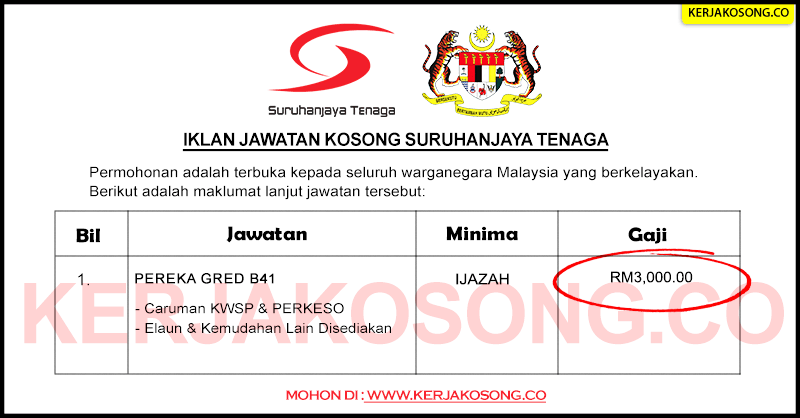 Jawatan Kosong Suruhanjaya Tenaga. Portal jawatan kosong ingin berkongsi maklumat peluang pekerjaan di Suruhanjaya Tenaga yang kini dibuka untuk Warganegara Malaysia dan kepada mereka yang berminat serta berkelayakan dipelawa untuk mengisi kekosongan jawatan ini seperti berikut:- Maklumat Jawatan Suruhanjaya Tenaga Jawatan Yang Ditawarkan: 1. Pereka Gred B41 Tarikh Tutup : 14 Disember 2019 Minima Kelayakan … Read more