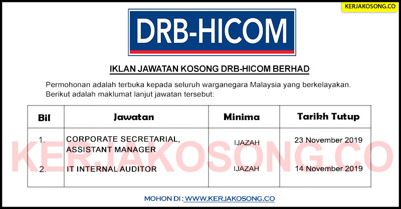 Jawatan Kosong Gamuda Berhad. Portal kerja kosong ingin berkongsi maklumat peluang pekerjaan yang kini dibuka di Gamuda Berhad dan kepada Warganegara Malaysia yang berminat serta berkelayakan dipelawa untuk mengisi kekosongan jawatan ini seperti berikut:- Maklumat Jawatan Gamuda Land Jawatan Yang Ditawarkan: 1. OFFICER- HR OPERATIONS Tarikh Tutup : 1 December 2019 Minima Kelayakan : Diploma … Read more